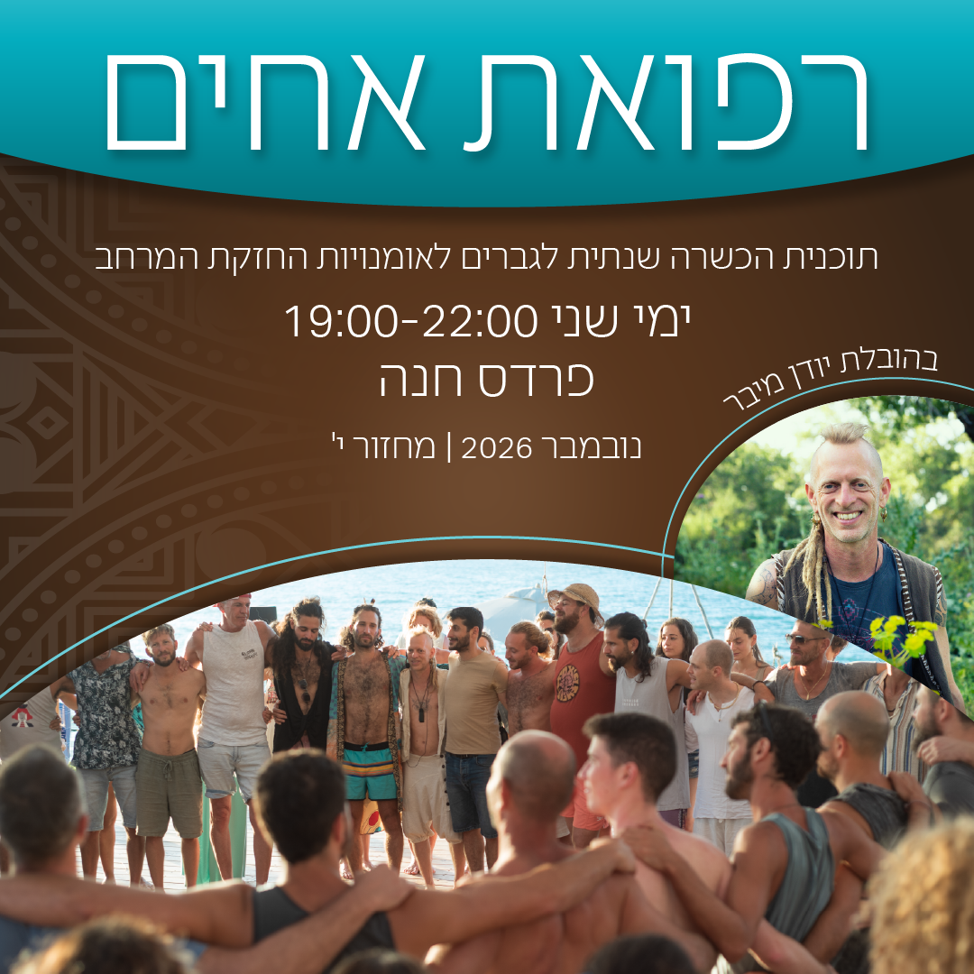 בתוך קבוצה אינטימית ניצור מרחב אוהב שיעורר אותך לרטוט את הגבר והמנהיג שאתה – זוהי הכשרה להנהגה פנימית בריאה שמחוברת לליבה שלך ומיועדת לאמיצי לב שמוכנים ומתבקשים להתגלות אל התבונה וכוחות והקסם שחיים בתוכם.